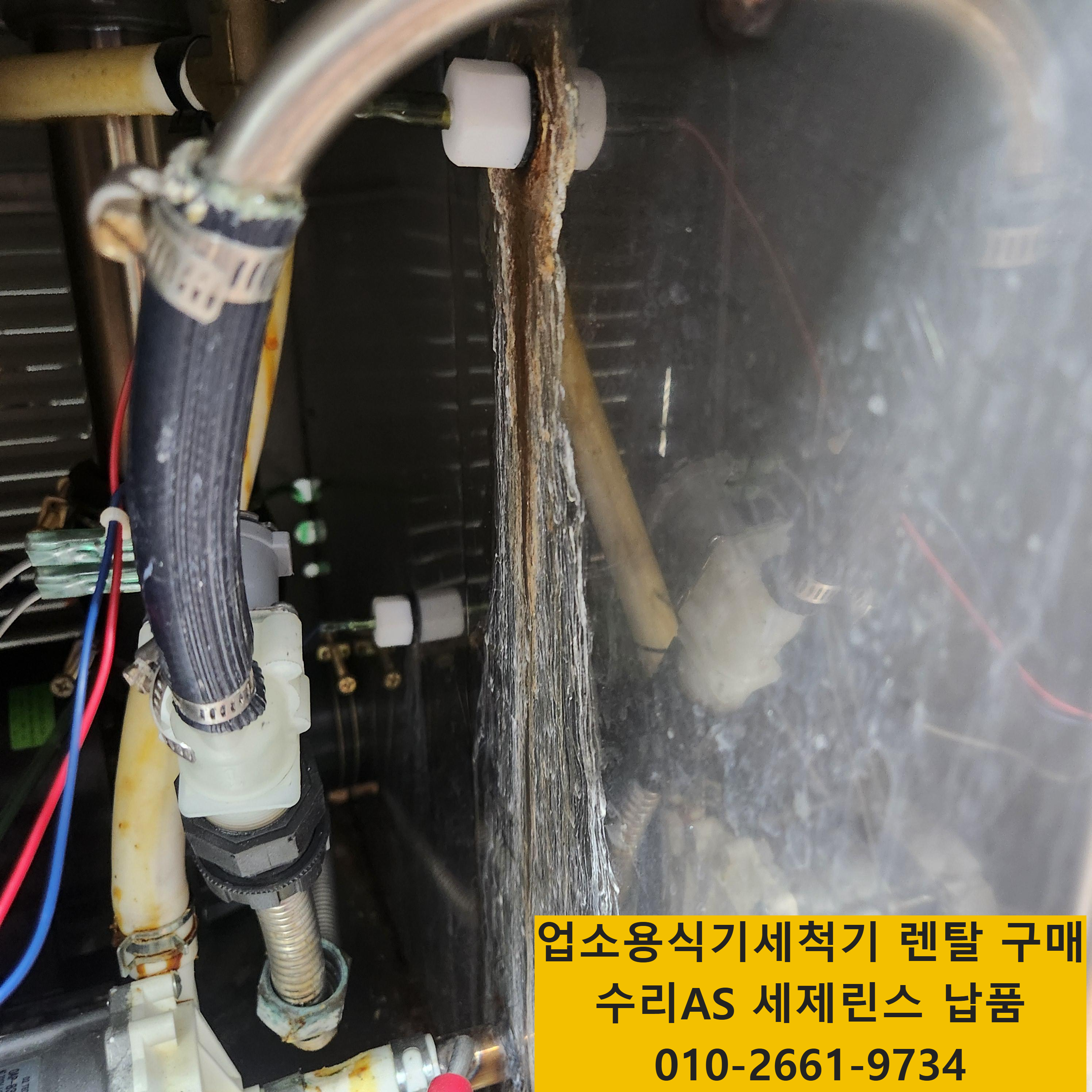 오늘은 부산 중구의 한 햄버거 프랜차이즈에서 사용중인 업소용식기세척기가 몇일 전부터 한방울씩 언뜻보면 느끼지 못할정도로 급수가 되는 라인과 날개에서 물이 나오는것같아서 대수롭지않게 여기다가 어제 밤부터는 물이 누수되는 양이 수도꼭지를 약하게 틀어놓은 만큼 물이 새고있어서 수리를 의뢰해주셨습니다.
